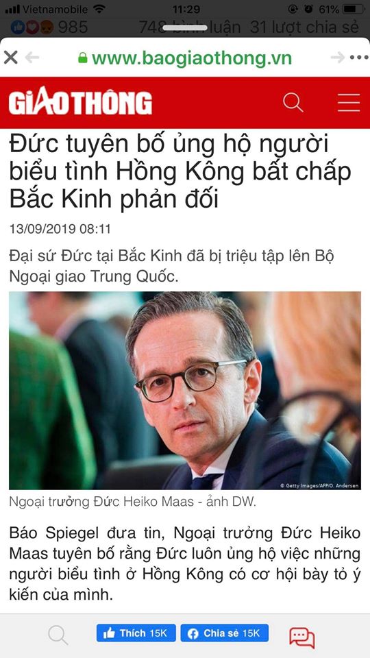 Hôm kia cậu nói chuyện về HK cùng các bạn ở lớp cũng là lúc báo chí Đức nói về HK.
